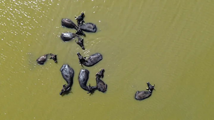 Yılmaz, mandaların yılın yaklaşık 7 ayında dışarıda kendi başlarına yaşadığının altını çizerek, “Manda sahipleri yaz başında hayvanlarını serbest bırakıyor. Bölgeye sadece kontrol amaçlı gidiyorlar. Kış mevsiminde de sahipleri mandaları kapalı alanlarına götürüyor.” diye konuştu.